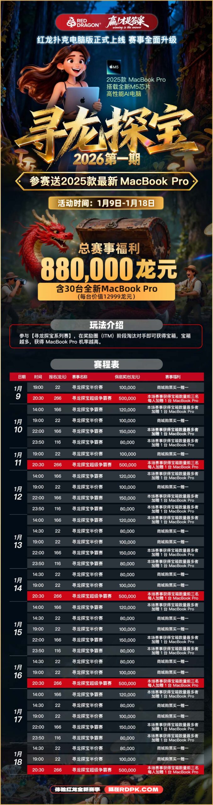 红龙杯,自2008年创立以来,已走过十七载光辉历程。无数扑克爱好者从这里启程,在一次次对垒中磨砺成长,与这项赛事共同镌刻下属于自己的难忘印记。 从澳门到济州岛,红龙杯已然成为亚洲扑克版图中一座不可撼动的坐标,它不仅承载着赛事本身的分量,更是一代代玩家心中梦想起航的地方,将竞技精神与仪式感不断推向新的高度。 2026年4月,红龙杯迎来里程碑式升级,首次推出PLUS系列赛。红龙杯PLUS主赛以400万韩元报名,设立18亿韩元保底,致力于打造亚洲顶级竞技舞台——这正是每一位扑克爱好者心之所向的殿堂。 而今,通向这一舞台又多了一个路径:3月27日20:00,「一战成名」全民冲刺赛即将开赛。 本场赛事总保50张红龙杯PLUS主赛门票(价值100万龙元)。 50个席位,意味着50个通往红龙杯PLUS主赛的机会,50个让梦想照进现实的入口。 这个与谈轩、周全等顶级pro们同台机会仅需55龙元,即可直通18亿韩元保底的主赛舞台,这样的机会实属难得。 免费参赛机会也不要错过: 3月25日0:00后新注册用户,可免费获得55门票一张;老玩家转发本海报至20人以上德州群,截图提交至APP“问题反馈”,亦可免 […]