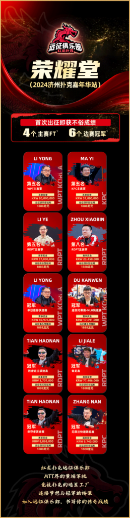 2024年10月16日,随着金手链得主蒲蔚然加入红龙战队,为了秉承帮助中国玩家征战国际顶尖舞台的愿景,红龙远征俱乐部应运而生。 在2024济州扑克嘉年华中,首次出征的红龙远征俱乐部的成员们以卓越的竞技实力创造辉煌战绩: 四名会员成功闯入主赛事决赛桌 六名会员摘得边赛冠军 累计斩获185万RMB奖金 红龙远征俱乐部会员专享泡沫保护,为参赛玩家提供强大的心理支持和资金支持! 在济州扑克嘉年华的赛场中,共为五名玩家送出俱乐部保护福利金31980元。 事实胜于雄辩,红龙远征俱乐部正是无数扑克爱好者梦想起航的地方,也是通向国际荣誉的坚实桥梁。 2025新篇章:线上选拔赛与远征招募令同步开启 在这激动人心的时刻,我们诚邀更多热爱扑克的玩家加入红龙远征俱乐部,实现你的扑克梦! 2025年3月16日,全新一届的红龙扑克线上资格选拔赛正式拉开帷幕,同时也标志着红龙远征俱乐部新一轮的招募令正式开启。 无论你是初出茅庐的新秀,还是沉稳老练的竞技高手,这里都将成为你走向国际大赛、挑战极限的平台。 红龙扑克不仅为您提供通往顶级赛事的舞台,更为远征队会员打造了七大永久福利,助力每一位会员在征程中全情投入、无后顾之 […]